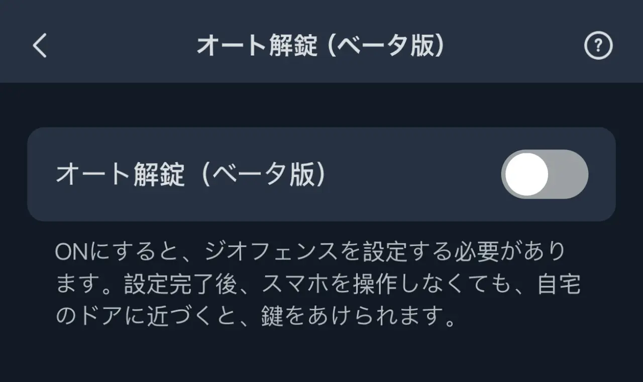 オート解錠をオンにすると、スマートフォンを持ったユーザーがドアに近づいた際に、自動的にドアのロックが解除されるようになる。