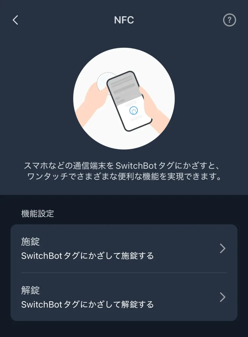 別売りの「SwitchBot NFCタグ」をドアロックUltraにかざすだけで、解錠・施錠を行うことができる。利用にはタグの事前登録が必要だ。