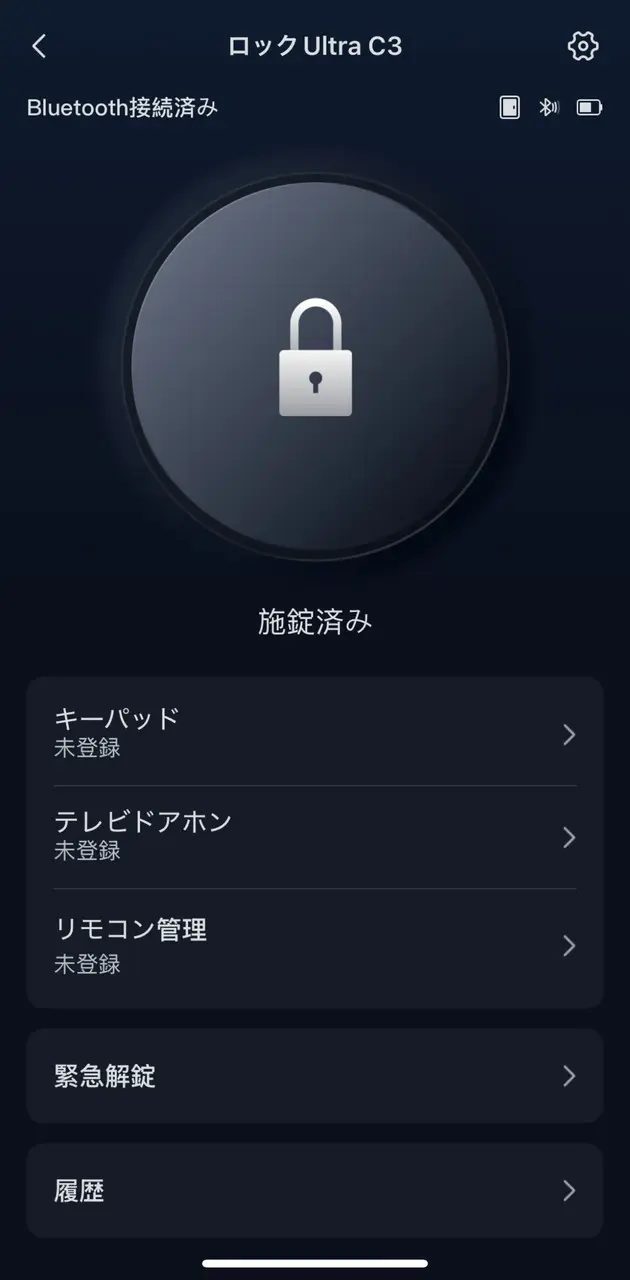 画面の指示に従って接続を完了させると、トップ画面にロックUltraが追加され、アプリ経由での操作が可能となる。