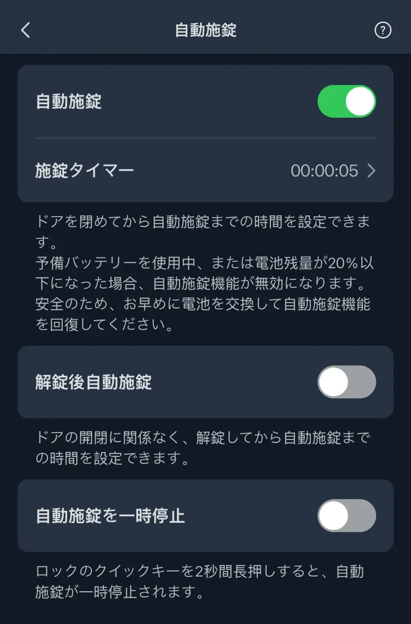 また、ドアの開閉に関係なく、解錠してから一定時間が経過した際に自動施錠させることも可能だ。