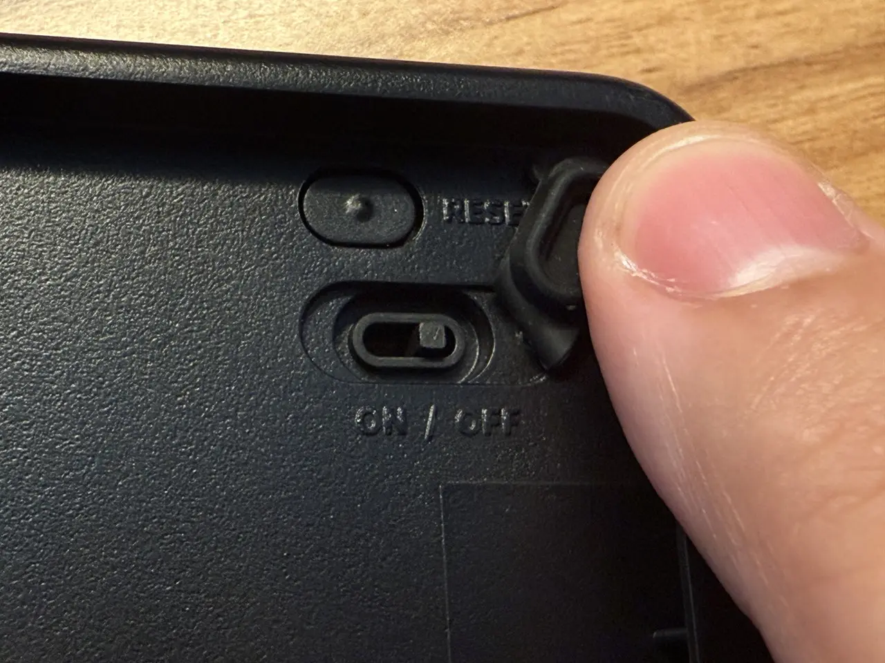 背面上部の防水ゴム栓を外すと、主電源スイッチが現れます。