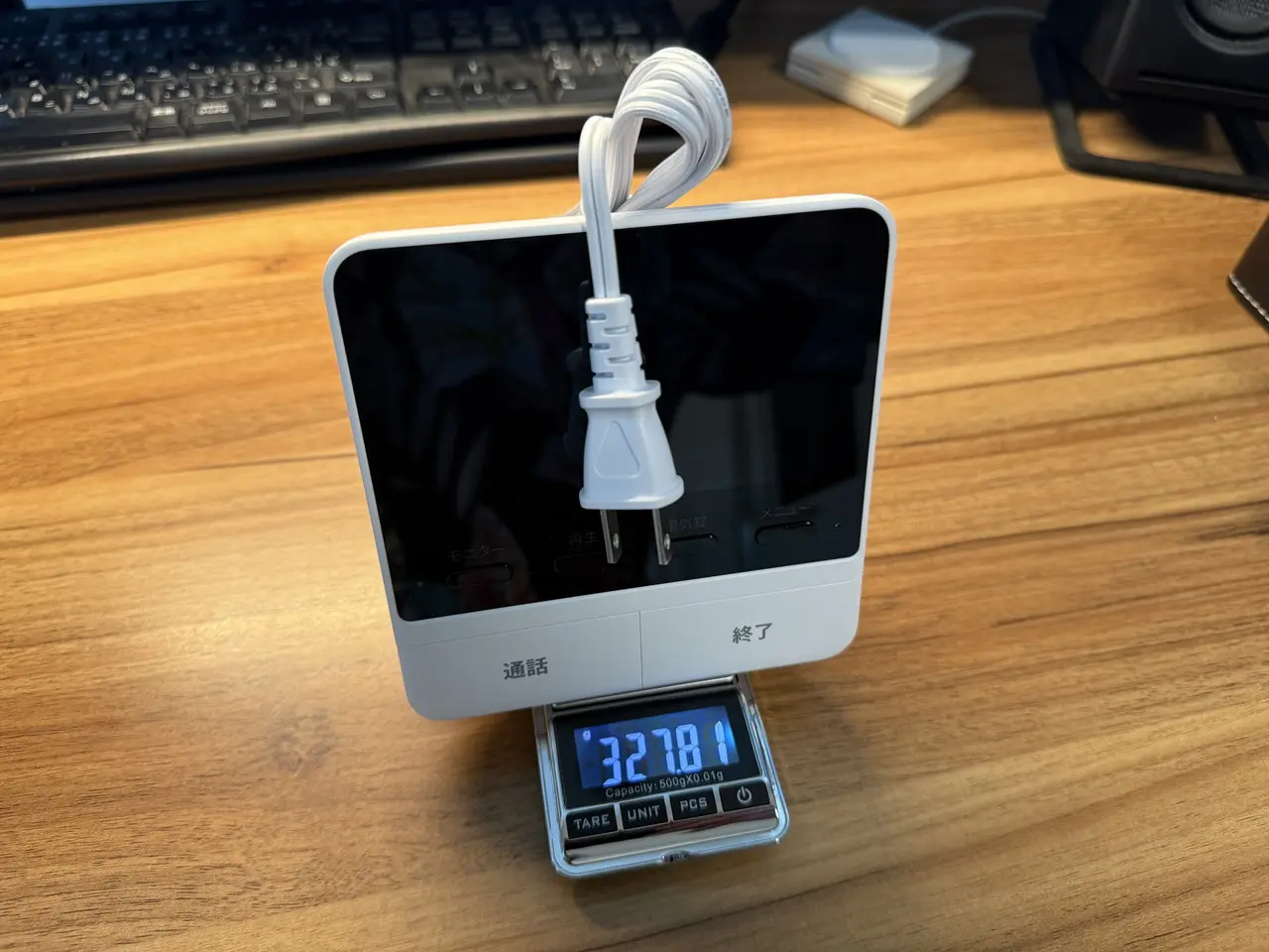 モニター親機の重量は、実測で約328g。十分に軽量で、壁掛け設置にも適しています。