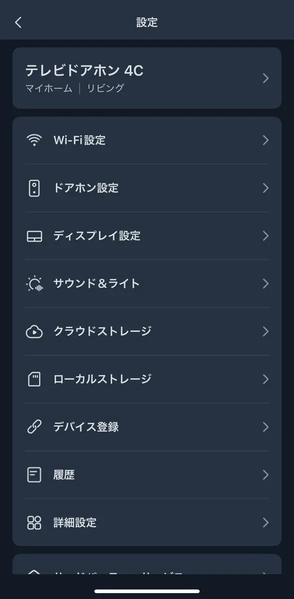 接続が完了するとアプリ上からスマートテレビドアホンの設定を行うことが可能になります。また、親機と子機のペアリングも完了し、映像が親機モニターから出力されます。