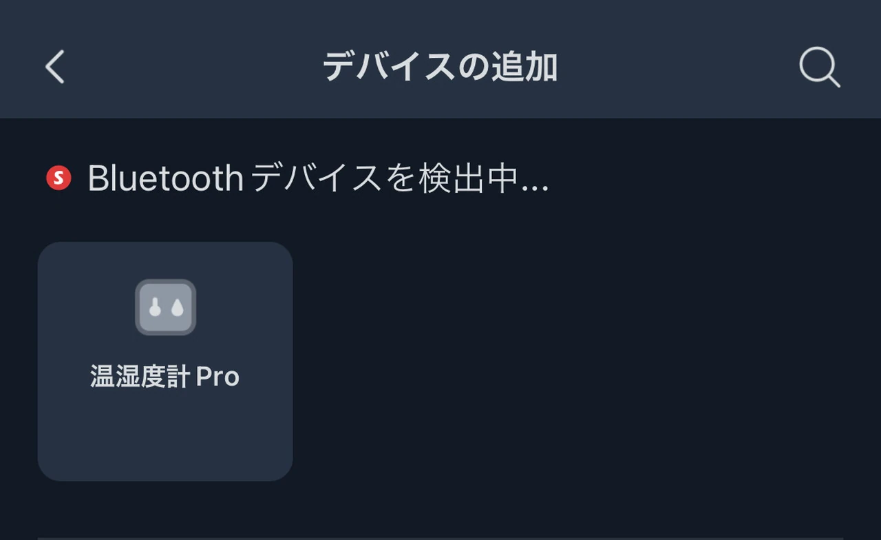 この状態でアプリを開き、検出されたデバイス「温湿度計 Pro」を追加する。