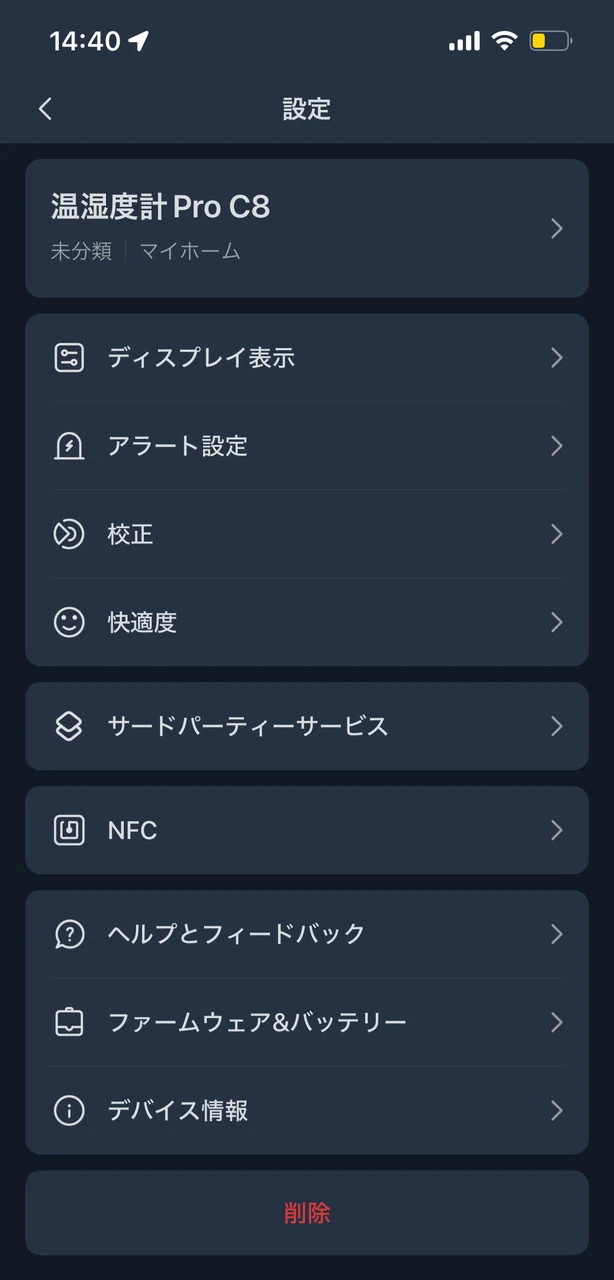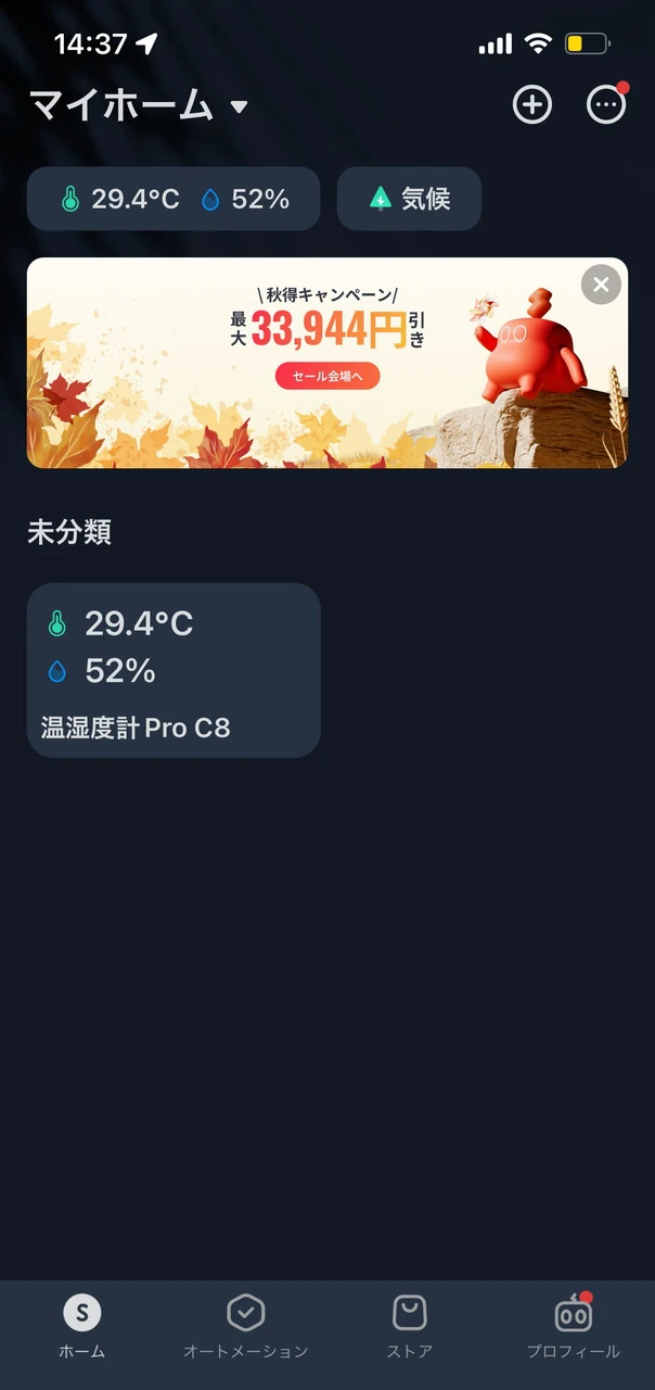 初期設定が完了すると、スマートホームデバイスの一員として、アプリ上に温湿度計が追加される。