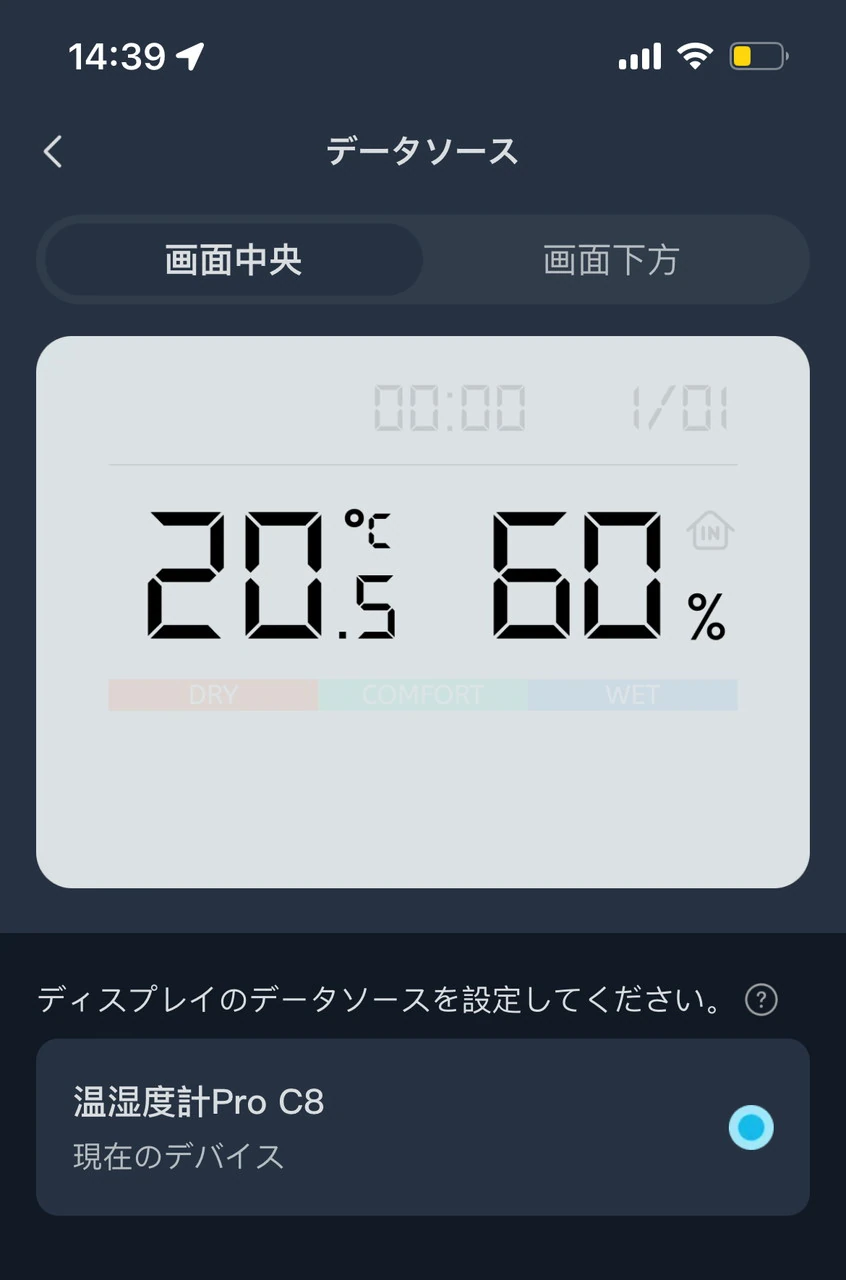 ▼連携後、『SwitchBot 防水温湿度計』を設置した屋外の温湿度情報を、ディスプレイ下部に表示可能になる。