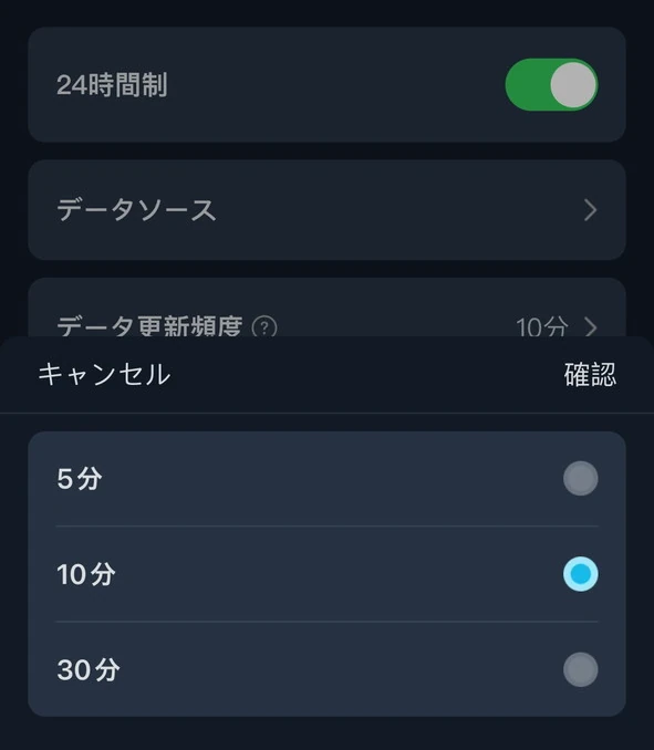 ▼データ更新頻度は、5分/10分/30分の3種類から選択可能。