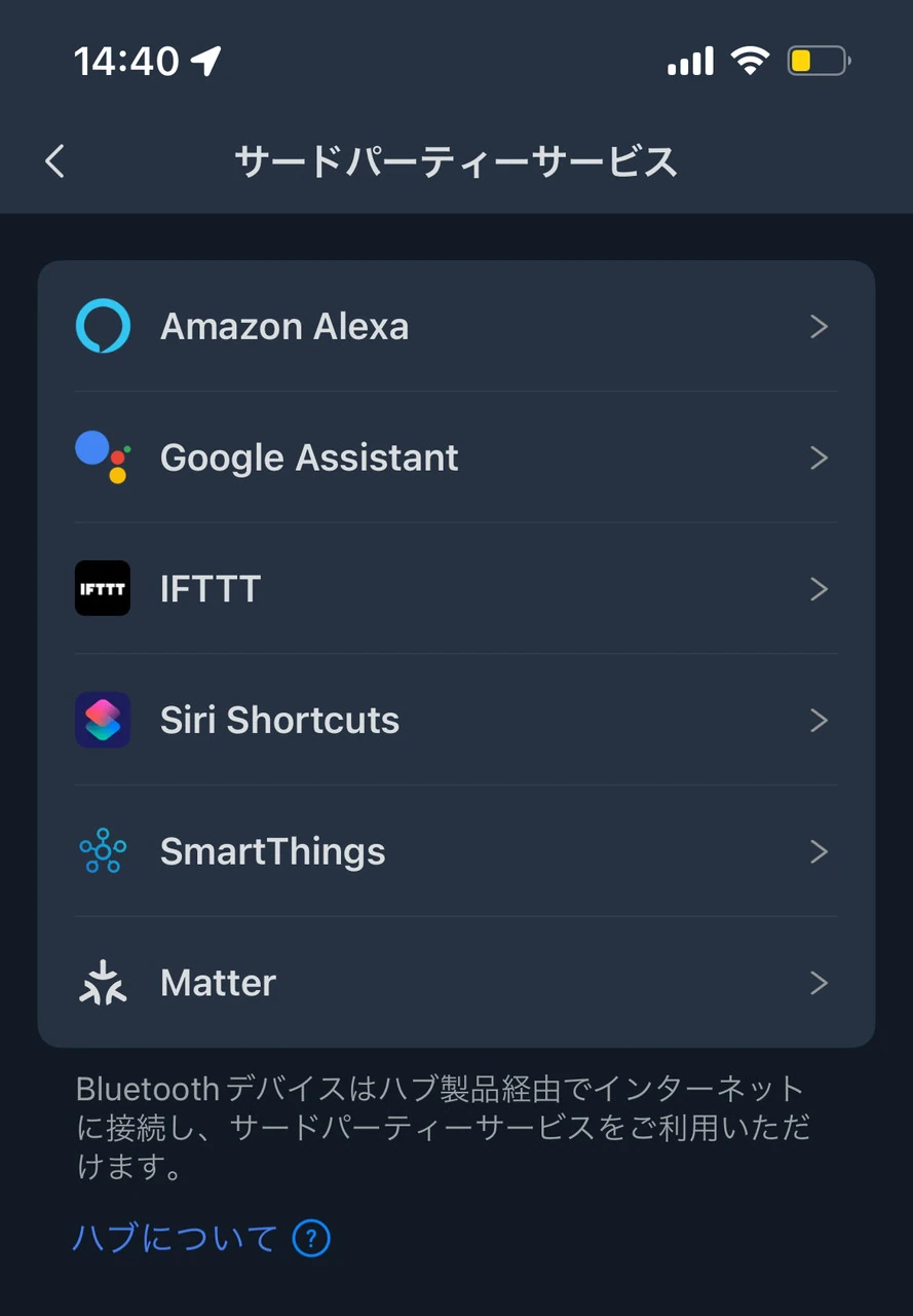 | スマートスピーカー(ハブ必要) | Alexa/Google/Siri/SmartThings |