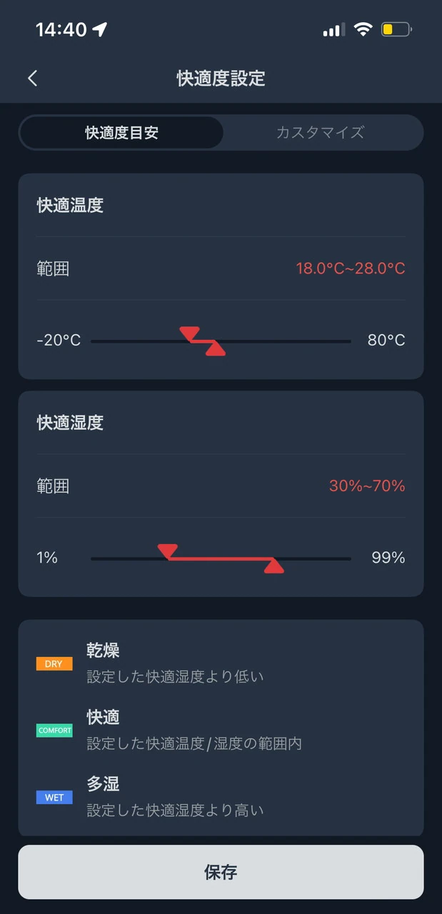この快適度を判定する基準は、アプリから細かく調節することが可能だ。