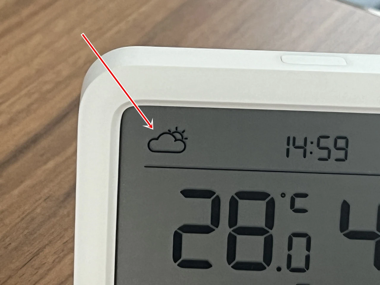 SwitchBotハブ製品と連携するか現在地情報を設定すると、ディスプレイ左上に、現在地の12時間先までの予報天気を表すアイコンが表示されるようになる。