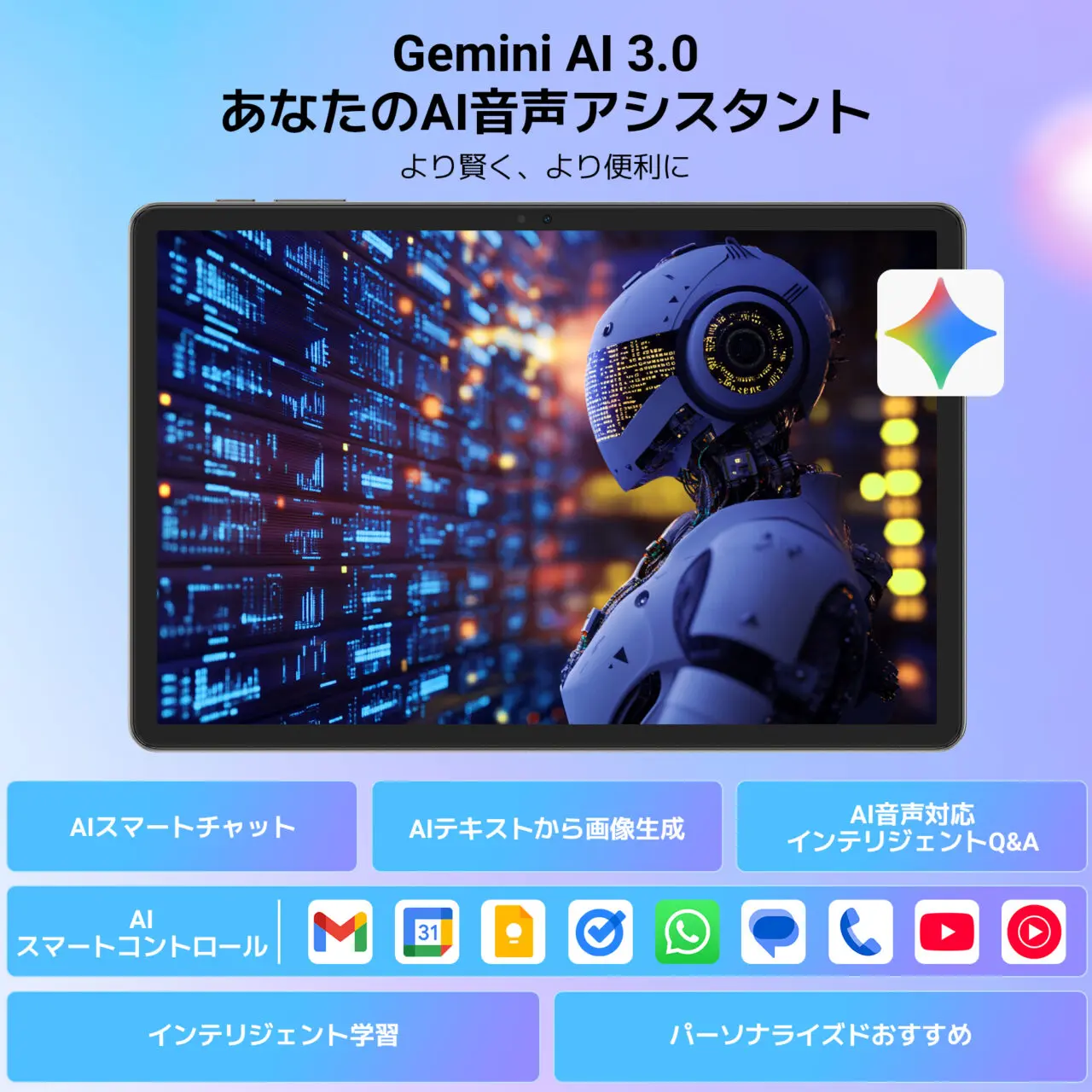 Gemini AI 3.0を搭載し、音声アシスタントやリアルタイム翻訳、スマート検索など、日常からビジネスまで幅広く活躍するモデルとなっています。
