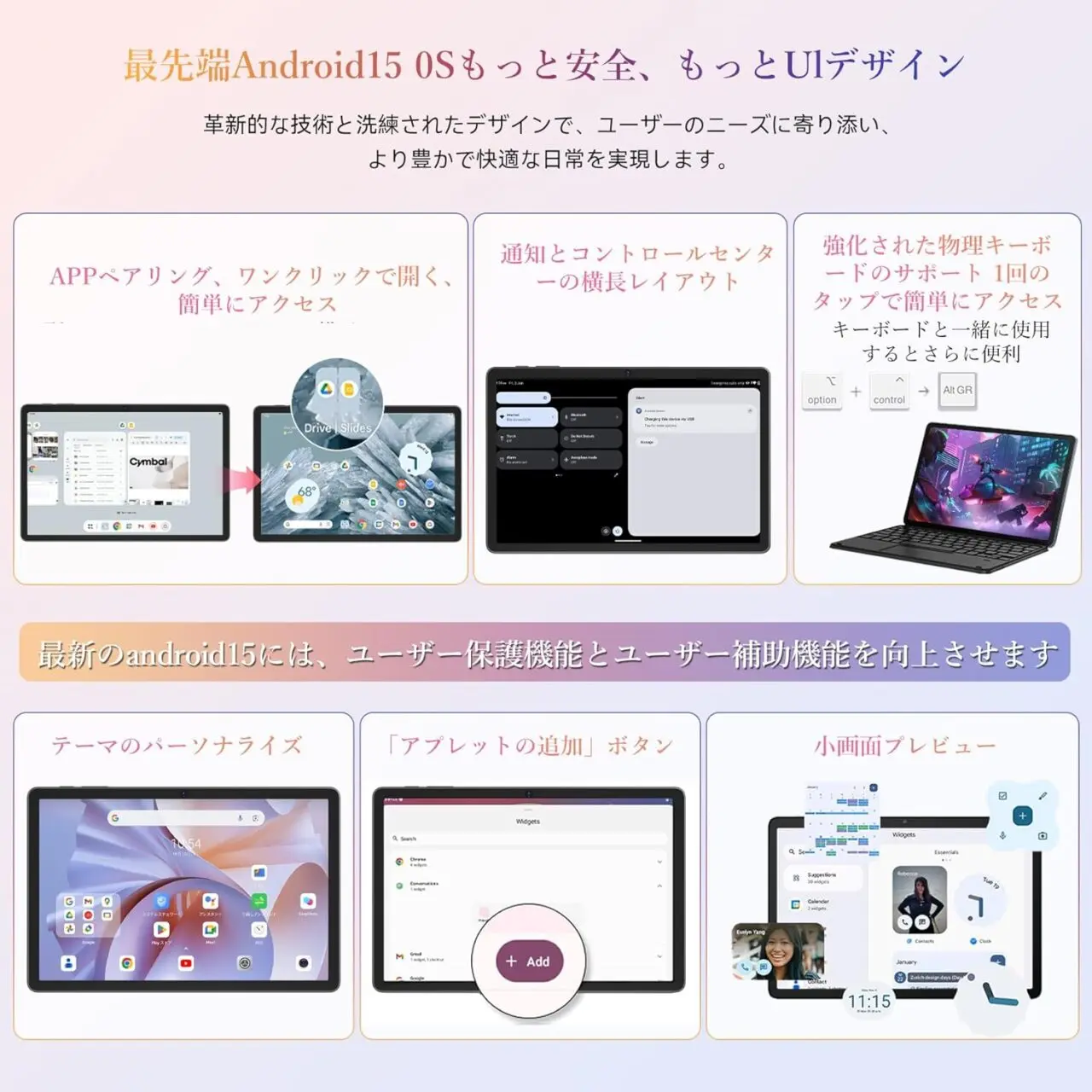 『Tabwee T90』は、Android 15を搭載したタブレットです。]