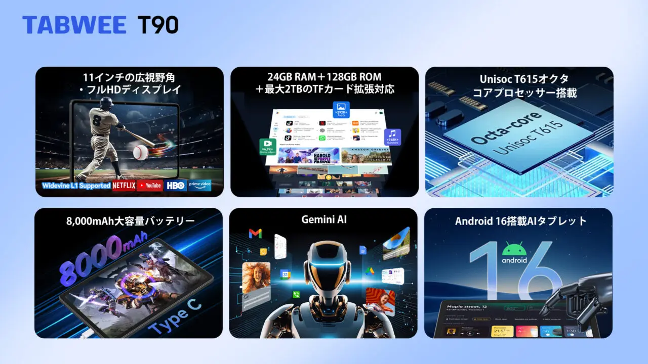そして2025年7月15日より、AmazonにてAndroid 16搭載版の『Tabwee T90』が新たに発売されます。