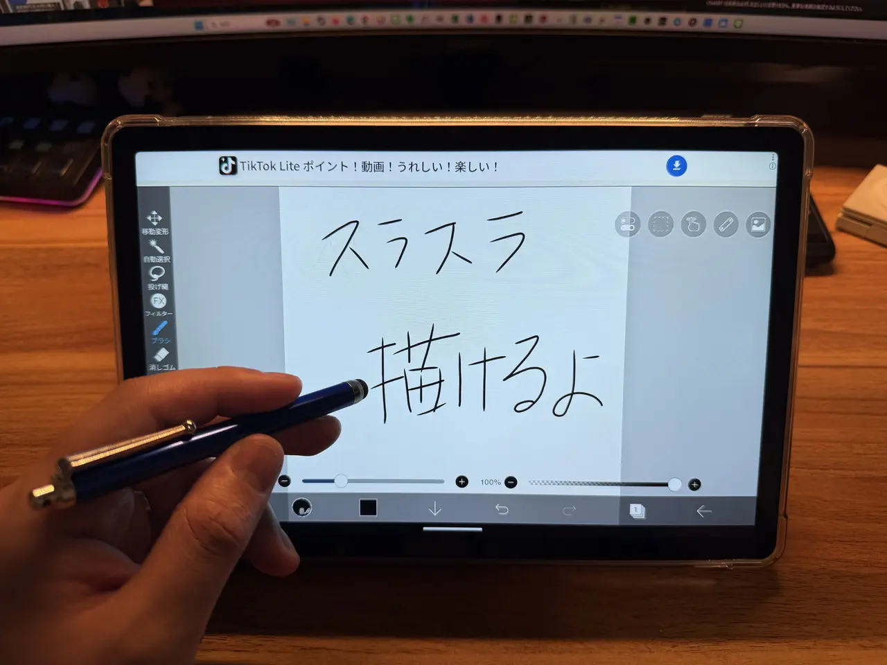 付属ペンの質は高いとは言えないが、描き心地は良好。画面へ直感的かつスムーズに描くことができた。