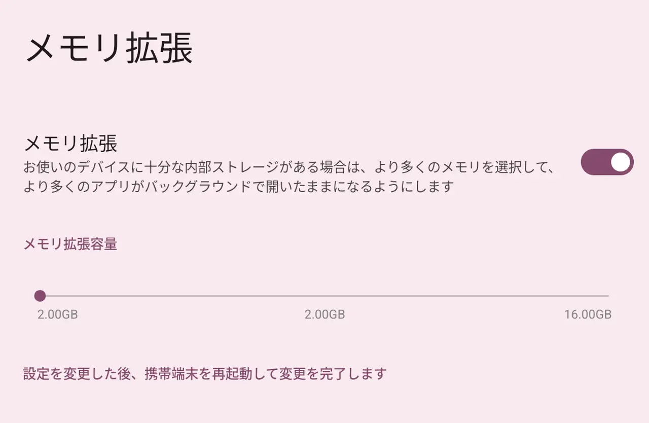 また、設定より最大16GBの仮想RAM拡張が可能だ。