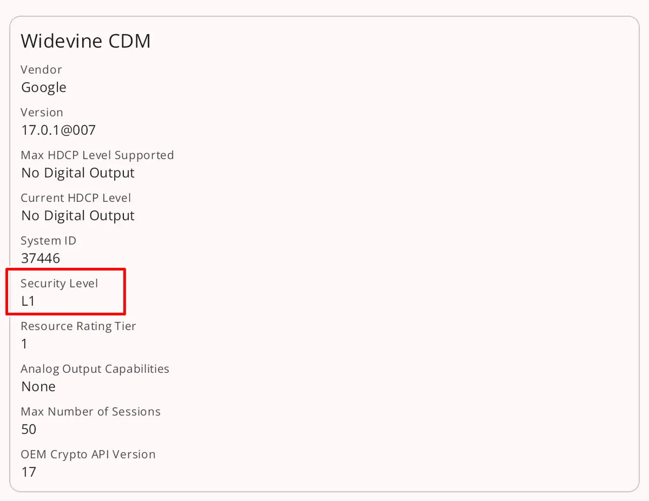 WidevineはL1サポートとなっており、ネトフリやAmazon Primeビデオなどのサービスで高画質設定の映像を楽しめる。