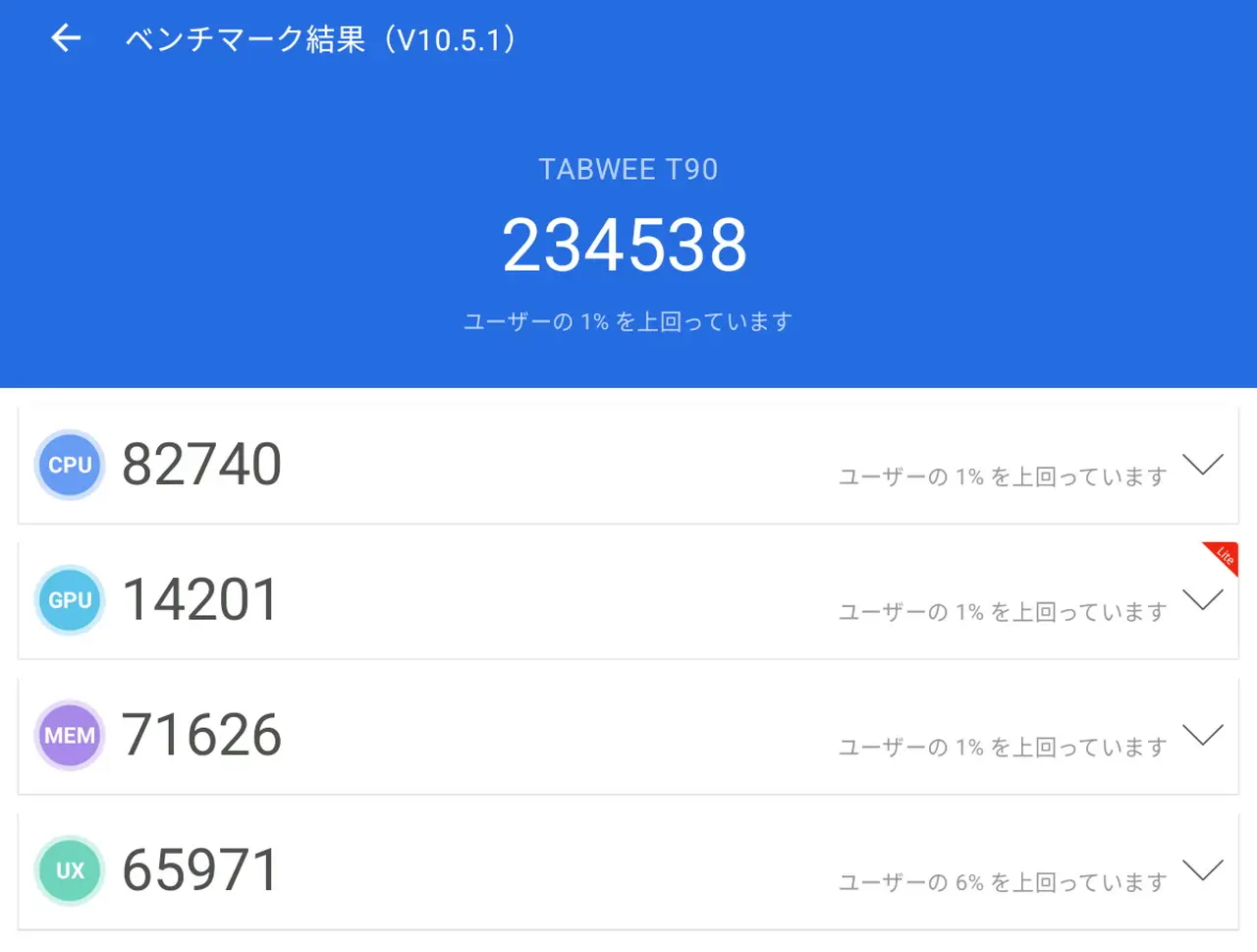『Tabwee T90』のAnTuTuベンチマークテスト結果
