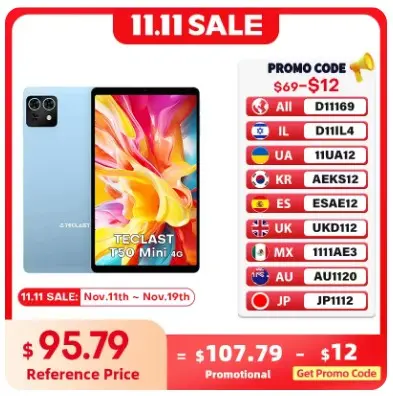 2025年11月11日の「ダブル11(独身の日)」に合わせて、TECRAST(テックラスト)の人気タブレット等が約60%OFFとなる大型セールがAliExpressにてスタートしました。