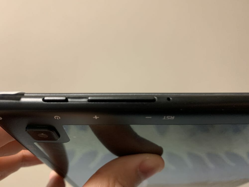 ▼本体左側面。電源ボタン・音量ボタン・リセット穴・USB Type-C端子を搭載。