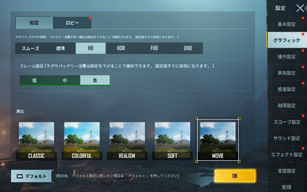 続いて『PUBG』においては、グラフィック設定を『HD』まで引き上げることが出来た。