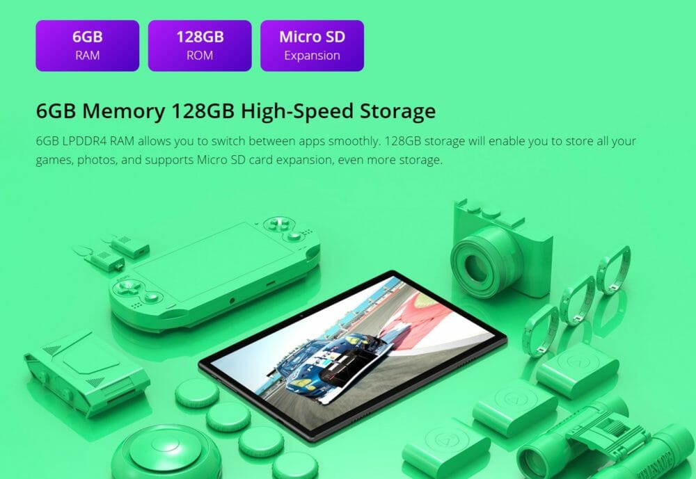 6GBメモリ・128GBストレージを搭載することでメディア視聴・ゲーミングのいずれにも適している。