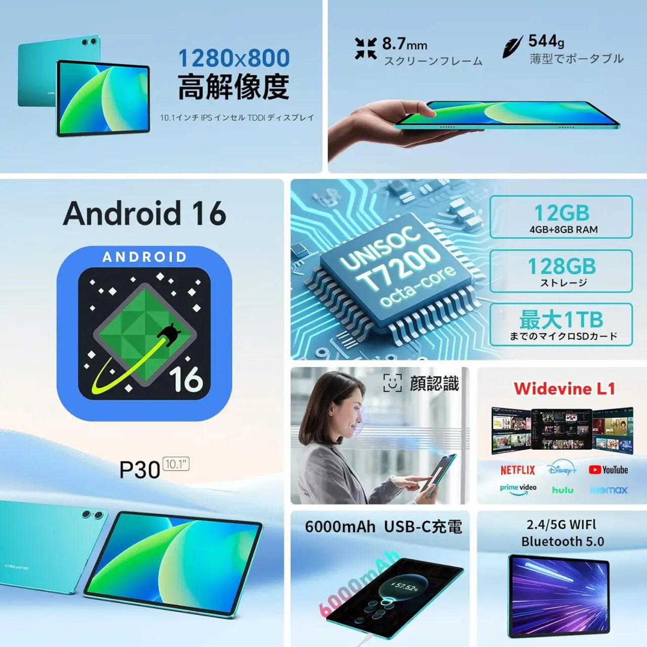 『TECLAST P30』は、10.1インチ IPSディスプレイを備えたAndroidタブレットです。