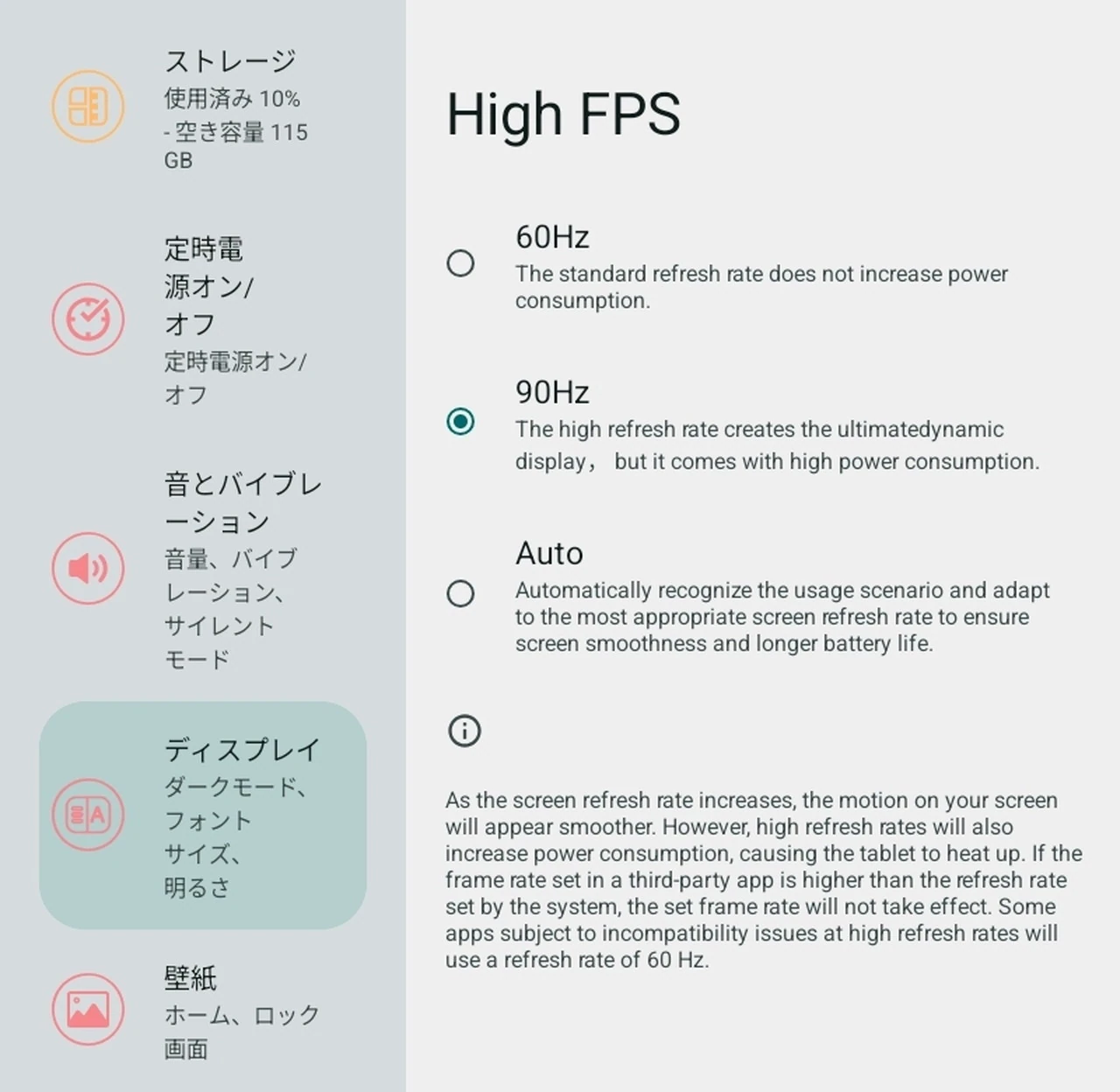 11インチIPSスクリーンは1280×800(HD+)解像度、および最高90Hzのリフレッシュレートに対応。WidevineはL1サポートとなっている。