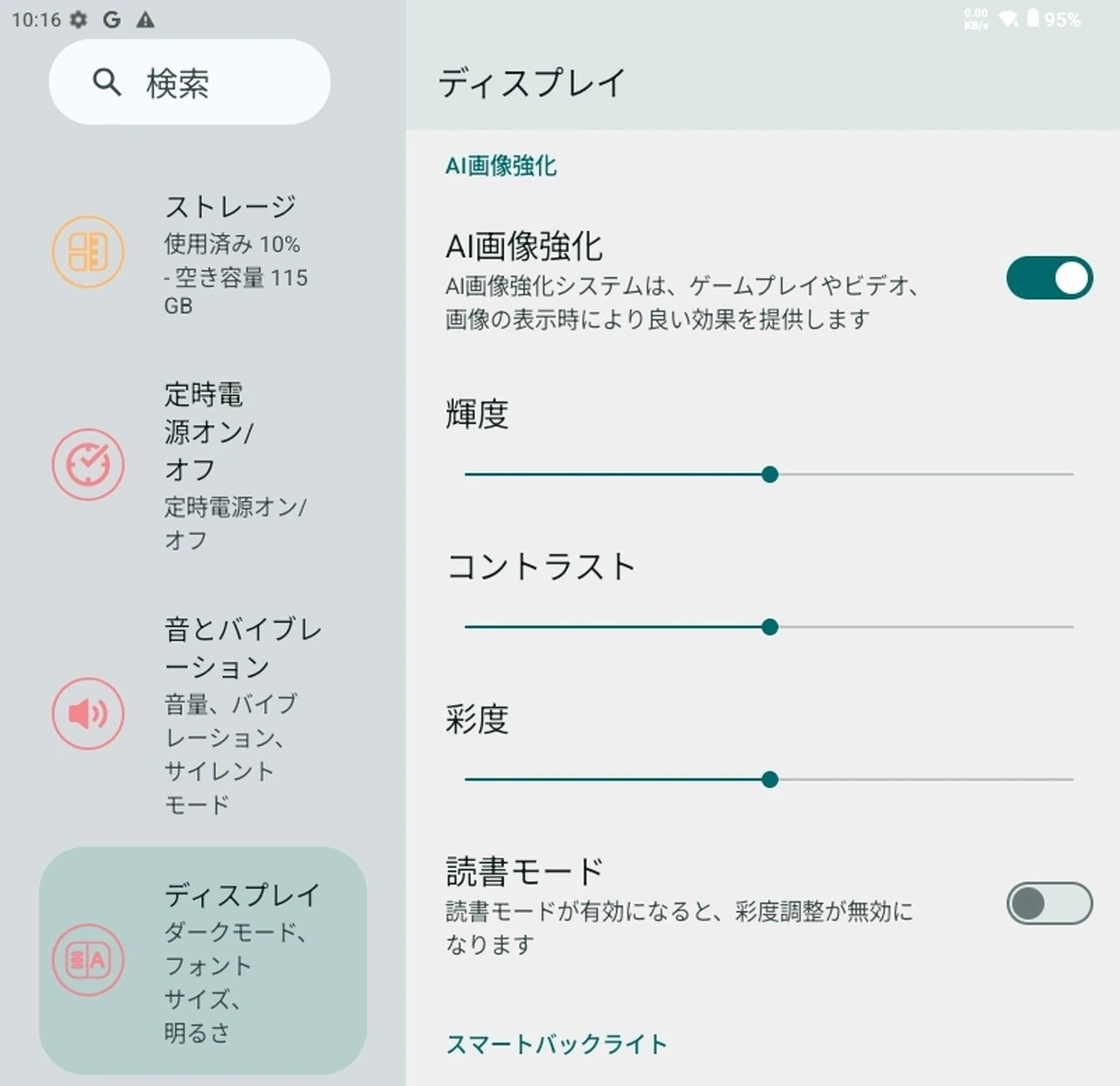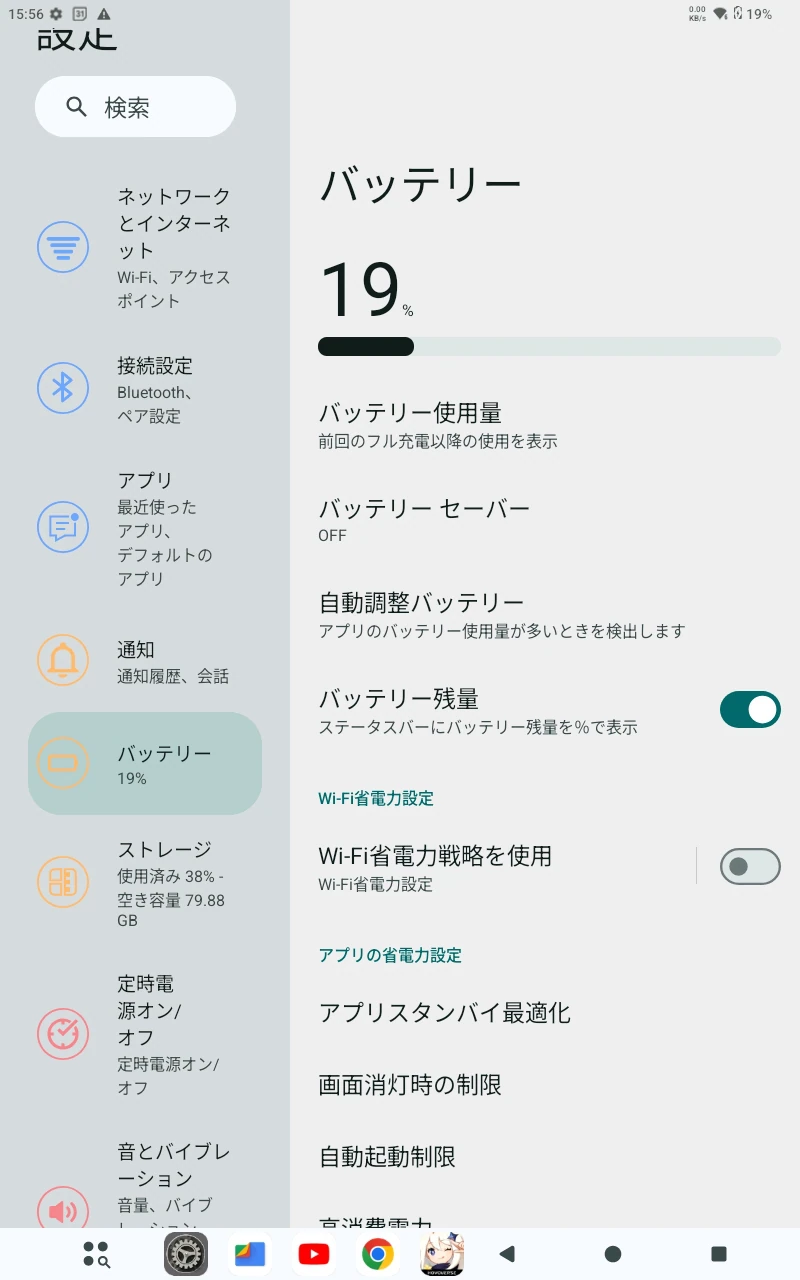 ▼バッテリーセーバーを利用すれば、より長いタブレット利用が可能になる。
