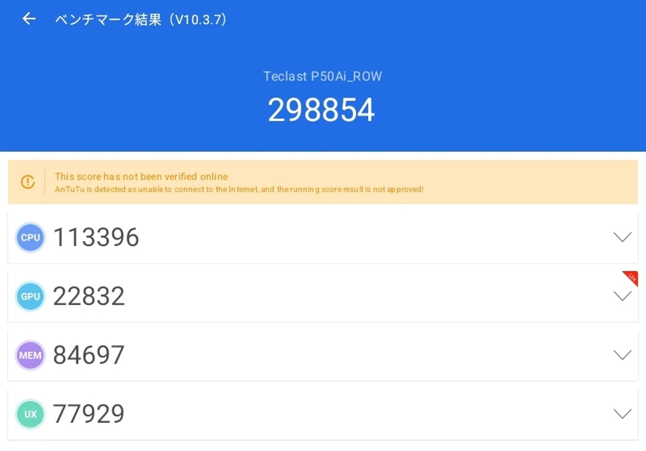 本機について、スマホ・タブレット端末の性能を測ることのできる『AnTuTuベンチマークテスト』を実施してみた。