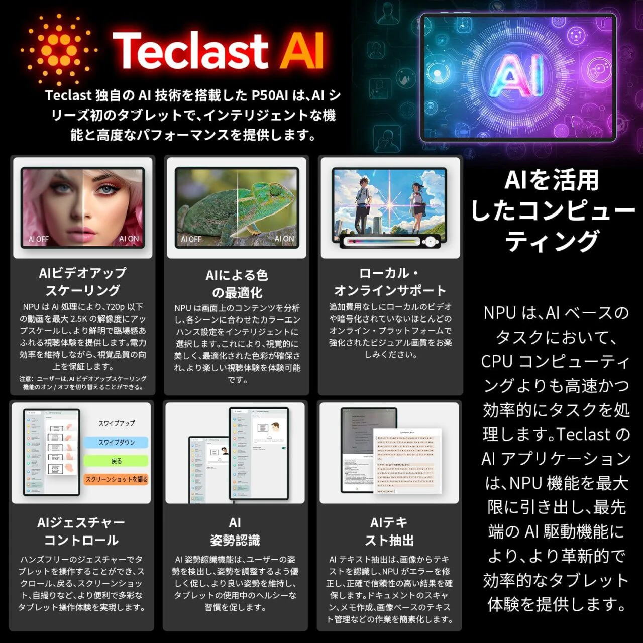 今回紹介した『TECLAST P50Ai』について、特徴をまとめると以下の通りだ。