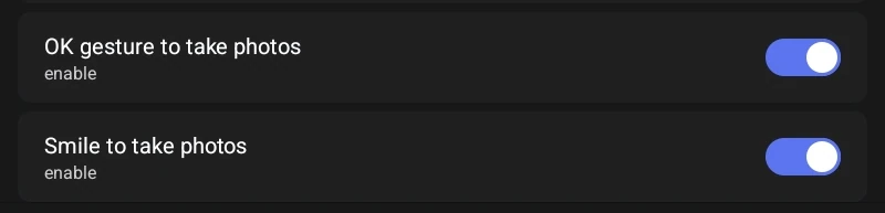 なお、カメラの設定画面からジェスチャー機能をオンにすることで、カメラの前で "OK" のジェスチャーを作ることで、3秒カウントダウンを起動して撮影することができる。