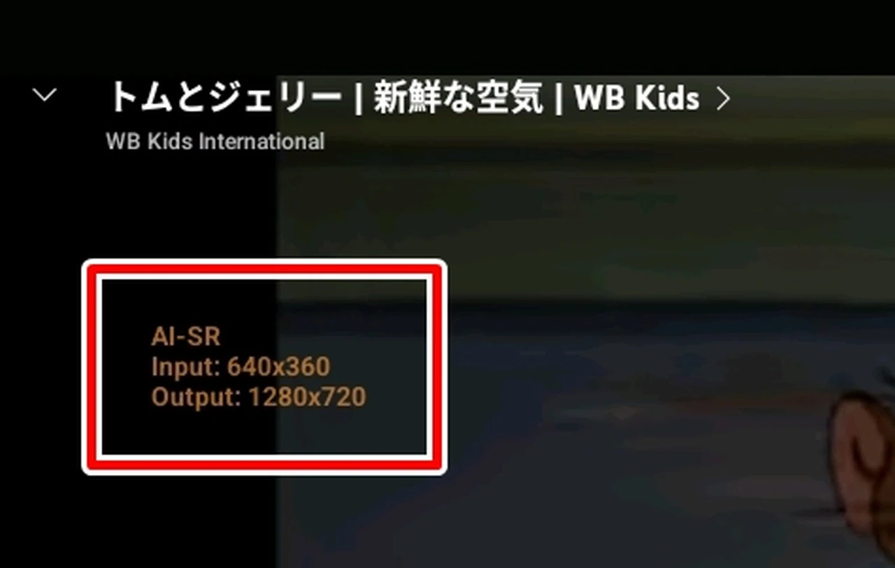 ▼動画再生時に、AIビデオアップスケーリングの適用効果が表示される。
