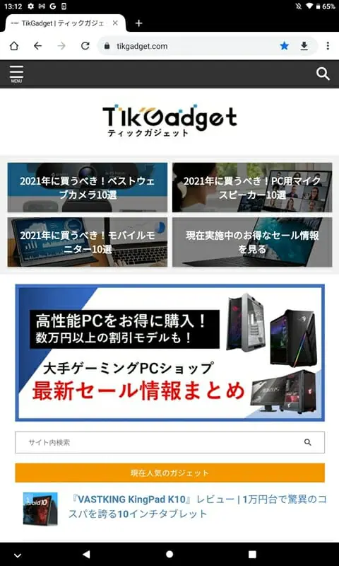 ウェブブラウジングは基本的に快適であり、画像が多めのサイトや、処理の重いサイトであっても スムーズに閲覧することが出来た。