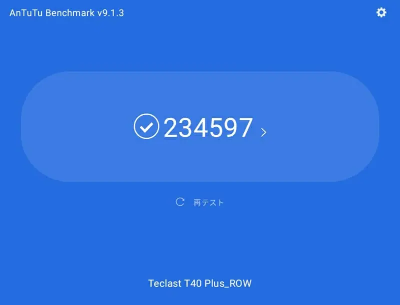 『Teclast T40 Plus』の AnTuTuベンチマークスコア の計測結果は以下の通り。