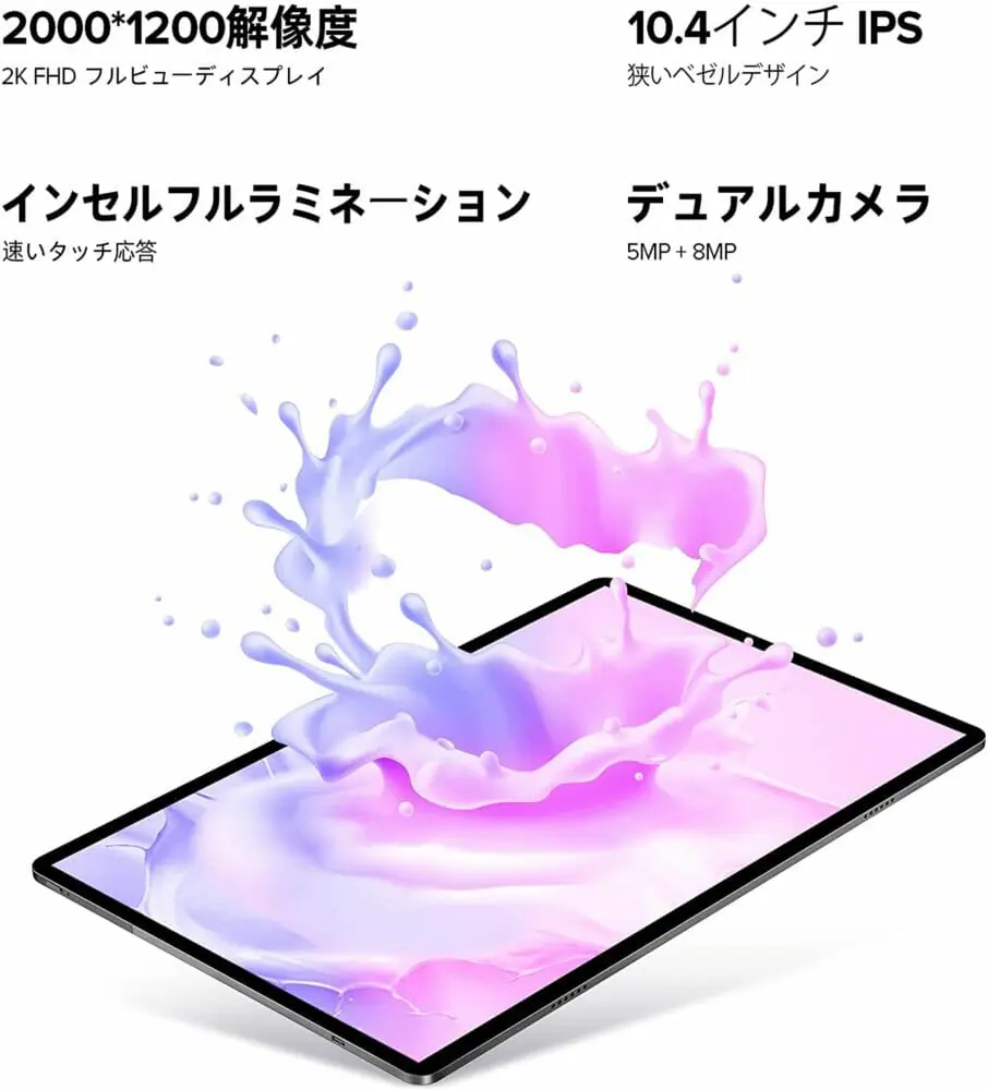 これは下位モデルである『Teclast M40』のFHD(1920×1080)解像度を上回っており、より美しい映像を楽しむことが可能だ。