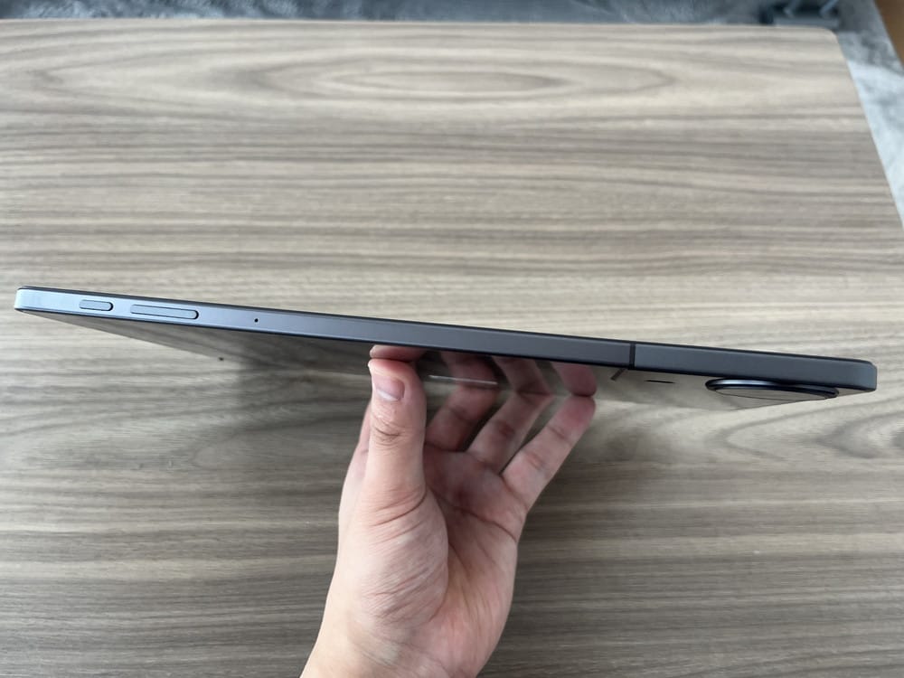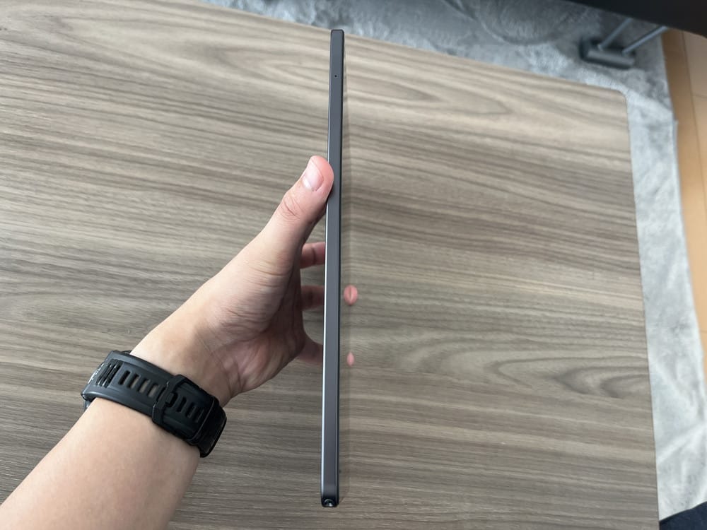 厚みは7.8mm、重量は約520gであり、11インチタブレットの中では薄型かつ軽量な筐体デザインとなっており、携行性にも優れている。