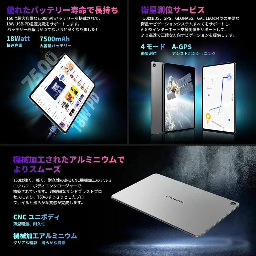 2022年に発売された『Teclast T50』のNEWモデルであり、Android12を採用。SoCがUNISOC T606からUNISOC T616に変更されているなど、全体的に機能強化された最新機種となっている。