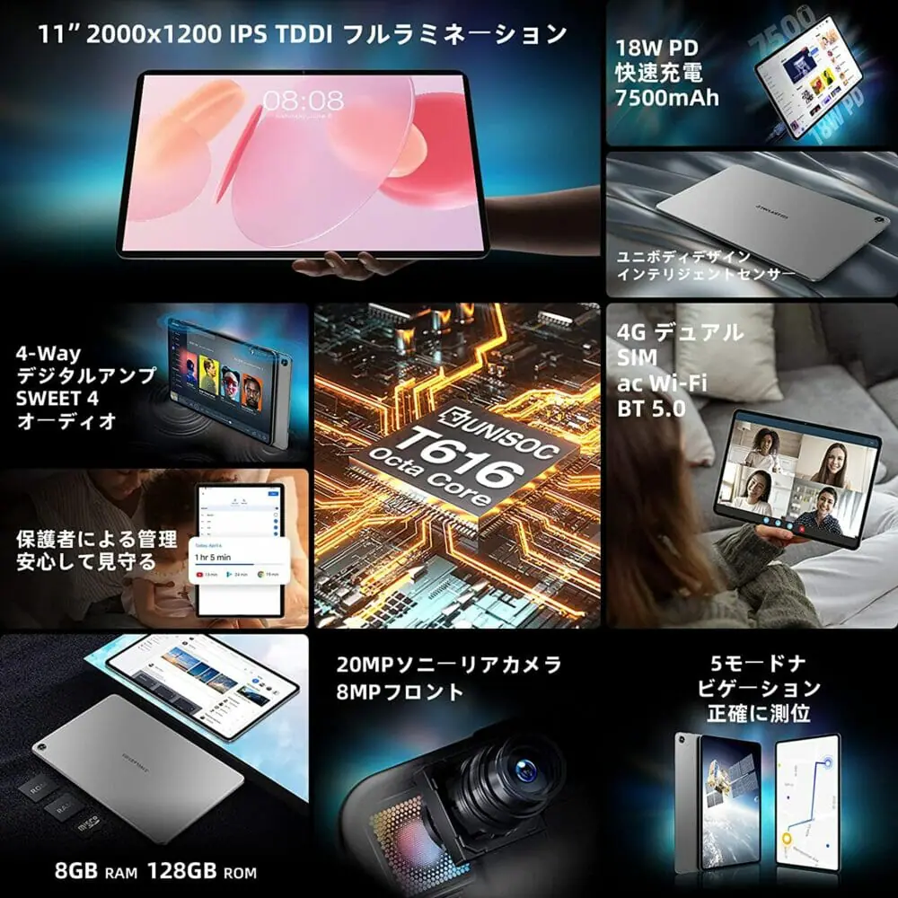 11インチディスプレイ搭載の格安タブレットであり、一般的なタブレット作業をスムーズにこなせるだけの性能を擁している。