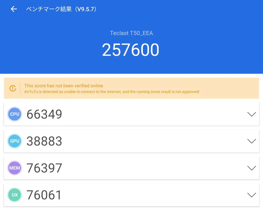 本機について、スマホ・タブレット端末の性能を測ることのできる『AnTuTuベンチマークテスト』を実施してみた。