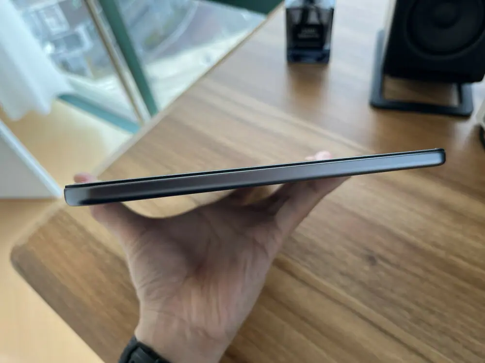 260 × 165 × 7.5 mm、約510gのコンパクトかつ薄型デザインで、持ち運びにも適している。