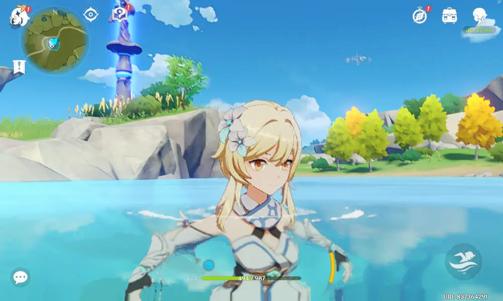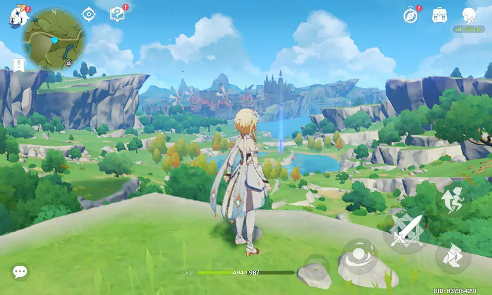 画質設定を "低" に設定した場合でも、比較的満足度の高いビジュアルで原神を楽しめる。