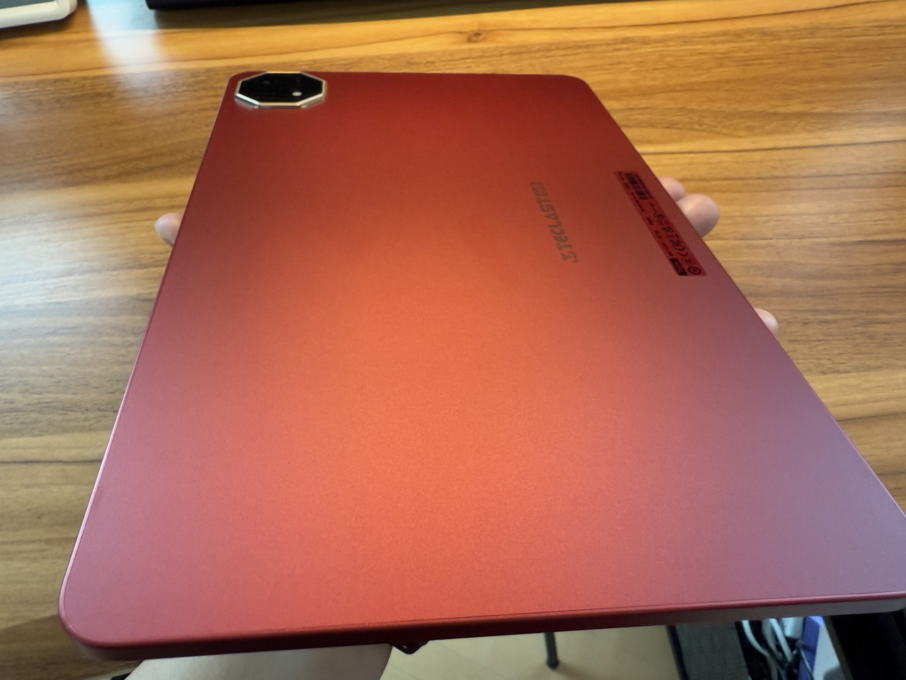 パッケージの時点で高級感があり、格安タブレットの中でも高い所有感を感じられるモデルとなっている。チェリーレッド色の筐体背面からは鈍い光沢が見られ、手触りもサラサラもサラサラと心地よいが、手脂などの汚れが若干目立つ。