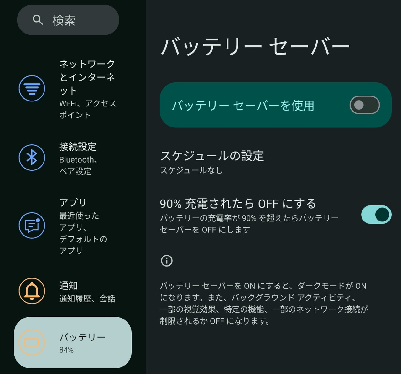 ▼バッテリーセーバーを利用すれば、より長いタブレット利用が可能になる。