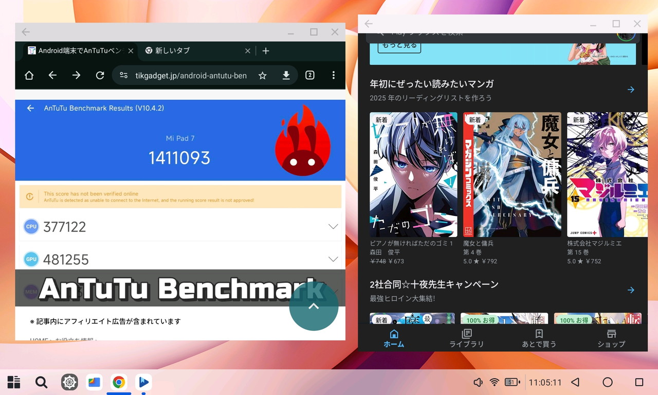 なお、前モデル「TECLAST P50Ai」では高負荷での連続使用時に、タブレット背面(Type-Cポート付近)が高い熱を持つことがあったが、本製品では、少なくとも筆者がレビューした際には、その現象は発生しなかった。