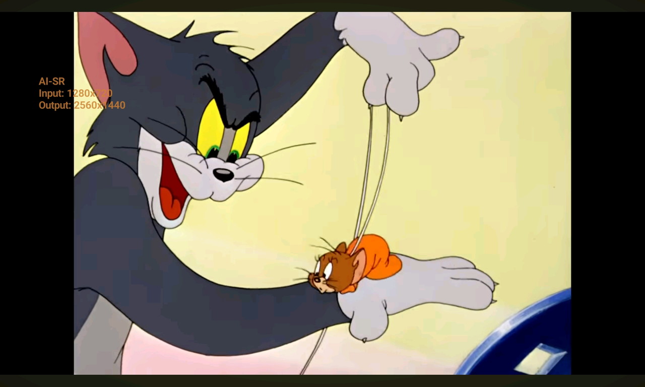 この機能をオンにすると、540pのビデオ解像度は1080pで出力でき、720pのビデオ解像度は1440pで出力されるようになる。Teclast公式によると、トム&ジェリーやドラえもんなど、特に昔のアニメ動画において高い効果を発揮するとのこと。