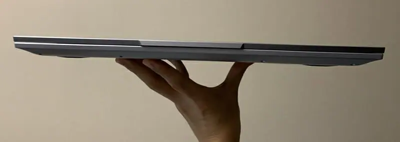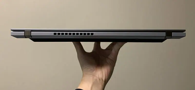 ▼PC本体の外観。本体サイズは35.9 x 24 x 2.8 cm、重量は約1.8 kgとサイズに対して軽量であり、片手でも十分に持ち上げられる。