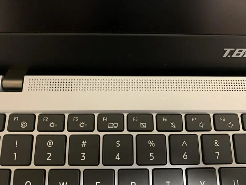 ▼ディスプレイとキーボードの付け根からサウンドが出力される。