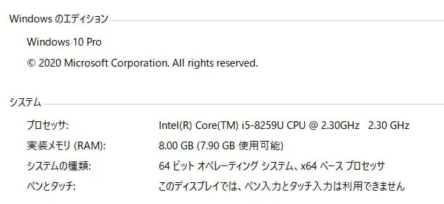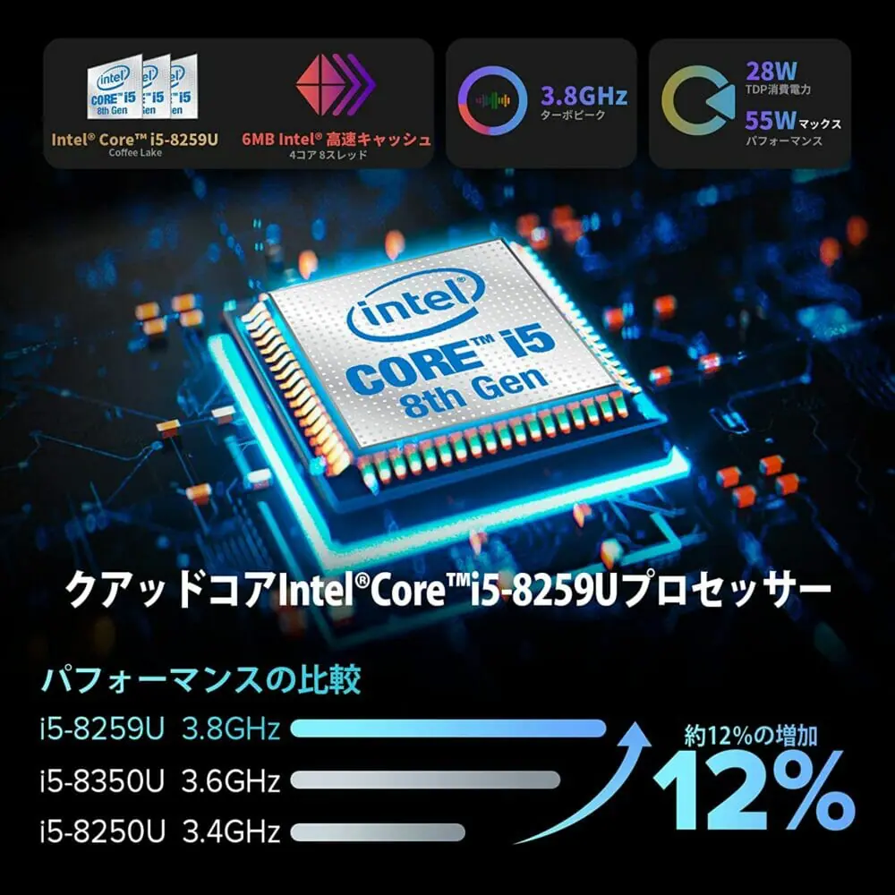 CPUにはIntel Core i5-8259U、RAM(メモリ)には8GBを採用しており、大抵の作業を快適にこなせるだけの性能を擁している。