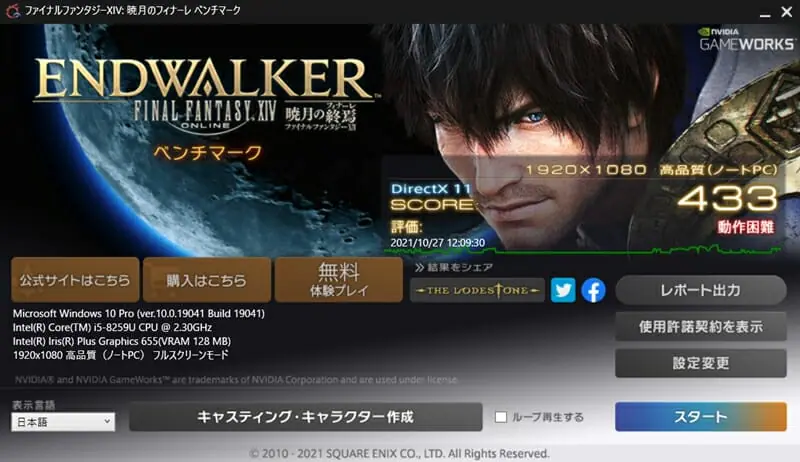 一方で、ファイナルファンタジー14(FF14)のベンチマークテストを実施した場合は、以下のような結果になった。
