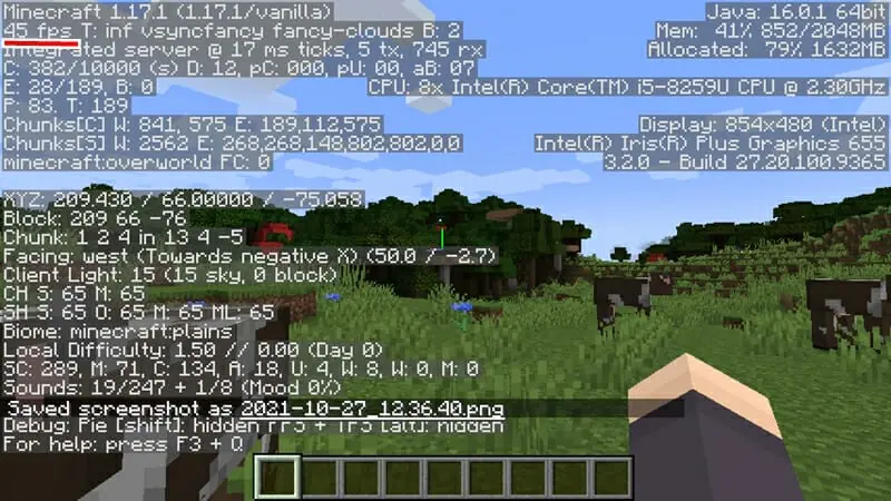 ▼チャンク読み込み時にはややフレームレート低下が発生するが、それ以外は問題なく遊ぶことが出来た。